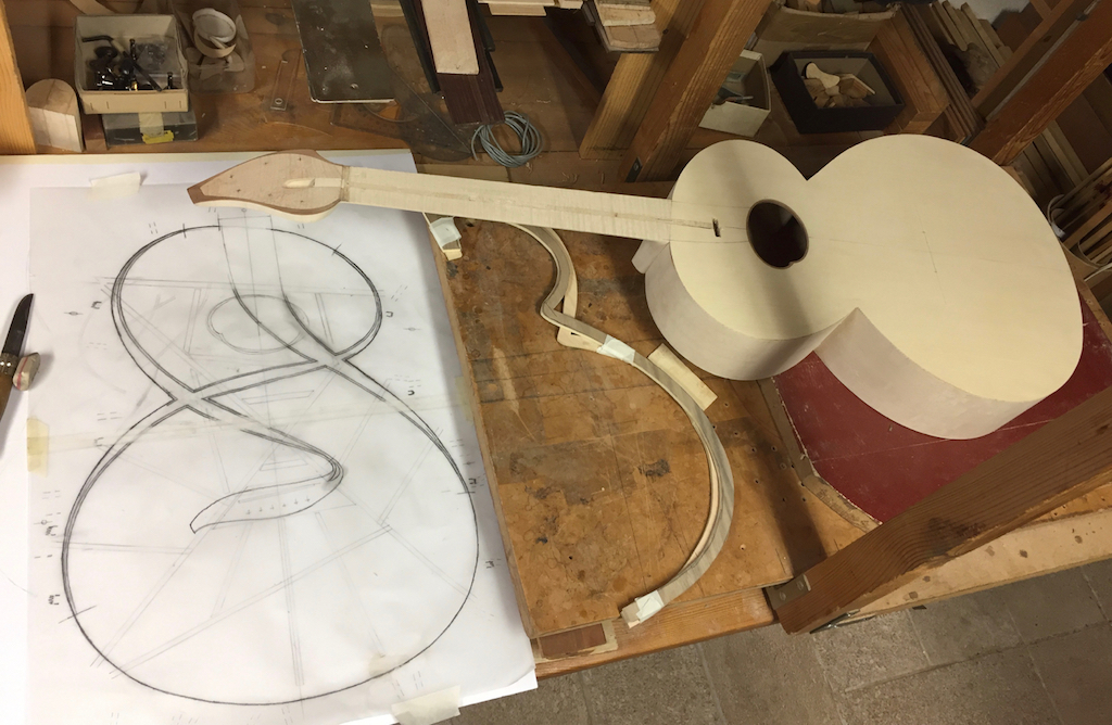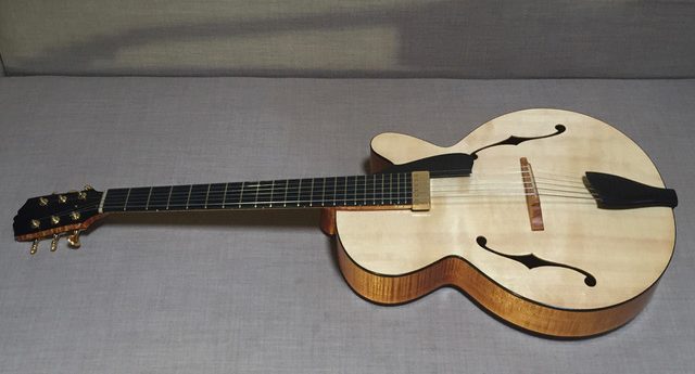 Andy’s work is firmly rooted in the classic tradition. His approach is to maintain proven and reliable principles in his method. Fifty years of refining his skills of design and execution within this discipline allow a freedom and flexibility in responding to the requirements of his clients. Andy is happy to work with anything from “Just build a guitar that will suit me” to “Look, you might think this is crazy but what I have in mind is….”