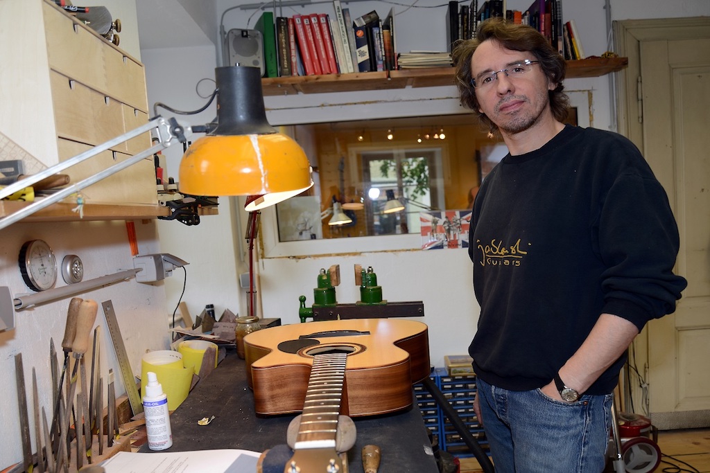 Christian Jablonski has been a master-luthier for 20 years now, living in Bad Goisern, Austria and teaching guitar building at the nearby HTBLA Hallstatt. Outside of his busy, teaching schedule, he constructs wonderful guitars in his workshop. As time is somewhat, limited, the output is small and most instruments are made-to-order. As a journeyman, he worked for the biggest manufacturer of steel-string guitars in Germany, & was later responsible for the repair-shop in a big store. He has seen, made and repaired a lot of guitars. Now he is happy in his small shop, making excellent guitars and the occasional repair.