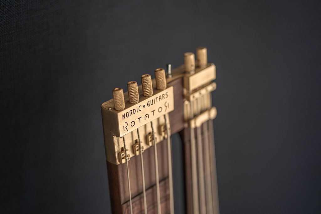 Nordic Guitars was established in 2015 by Bjørn Rønnow, who beside his jobs as a yoga teacher and handyman has always been interested in developing musical instruments. His vision is to give guitar- and bassplayers more opportunities for musical expression. ROTATOR is the name of this instrument, and the shown version is a 4 string fretted/4 string fretless bass. By rotating the necks 180 degrees, you can bring either the one or the other fretboard up in normal playing position. By playing the two fretboards together, using tapping, plucking and picking, you can create a musical whole, spontaneously, with one instrument.